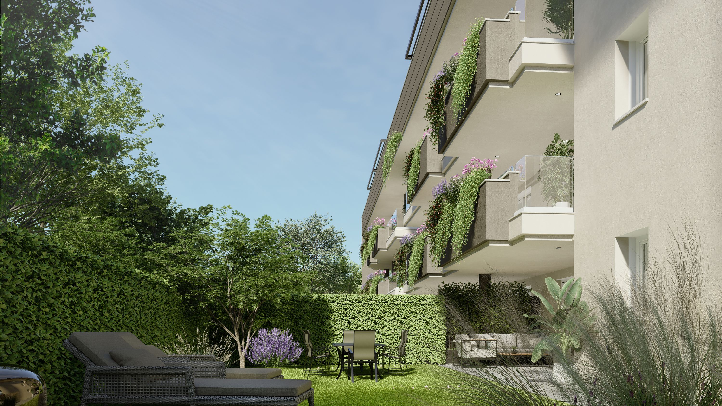 Ogni appartamento è concepito con un'architettura aperta e spazi ben distribuiti che massimizzano la luce naturale all'interno delle abitazioni e sui giardini interni.